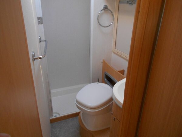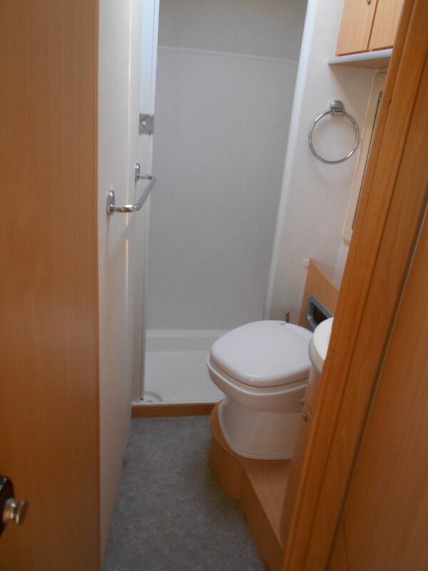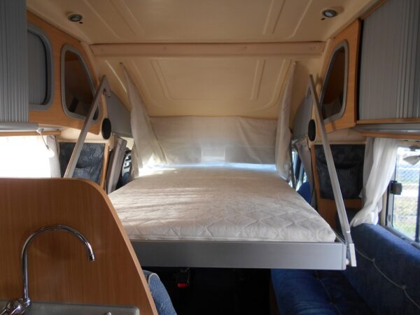 Dotazioni di serie : Clima motore , Abs – Asr , Specchi retrovisori elettrici , Chiusura porte centralizzata , Letto basculante , Frigo 150lt , Kit speedy , Doppio pavimento , Bagno con doccia separata porta rigida.